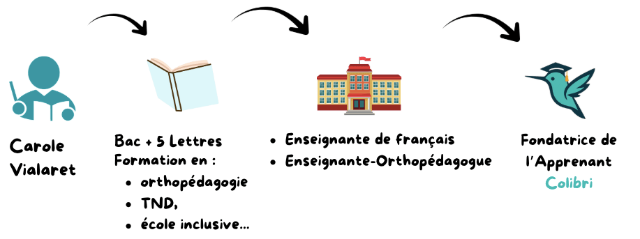 Parallèlement, je suis formée en orthopédagogie, une approche éducative issue du Québec qui vise à soutenir les apprenants ayant des difficultés ou des troubles d’apprentissage (dyslexie, dysorthographie, TDA/H, etc.) et je tiens une veille pédagogique active sur les techniques adoptées concernant l'école inclusive (CUA notamment).